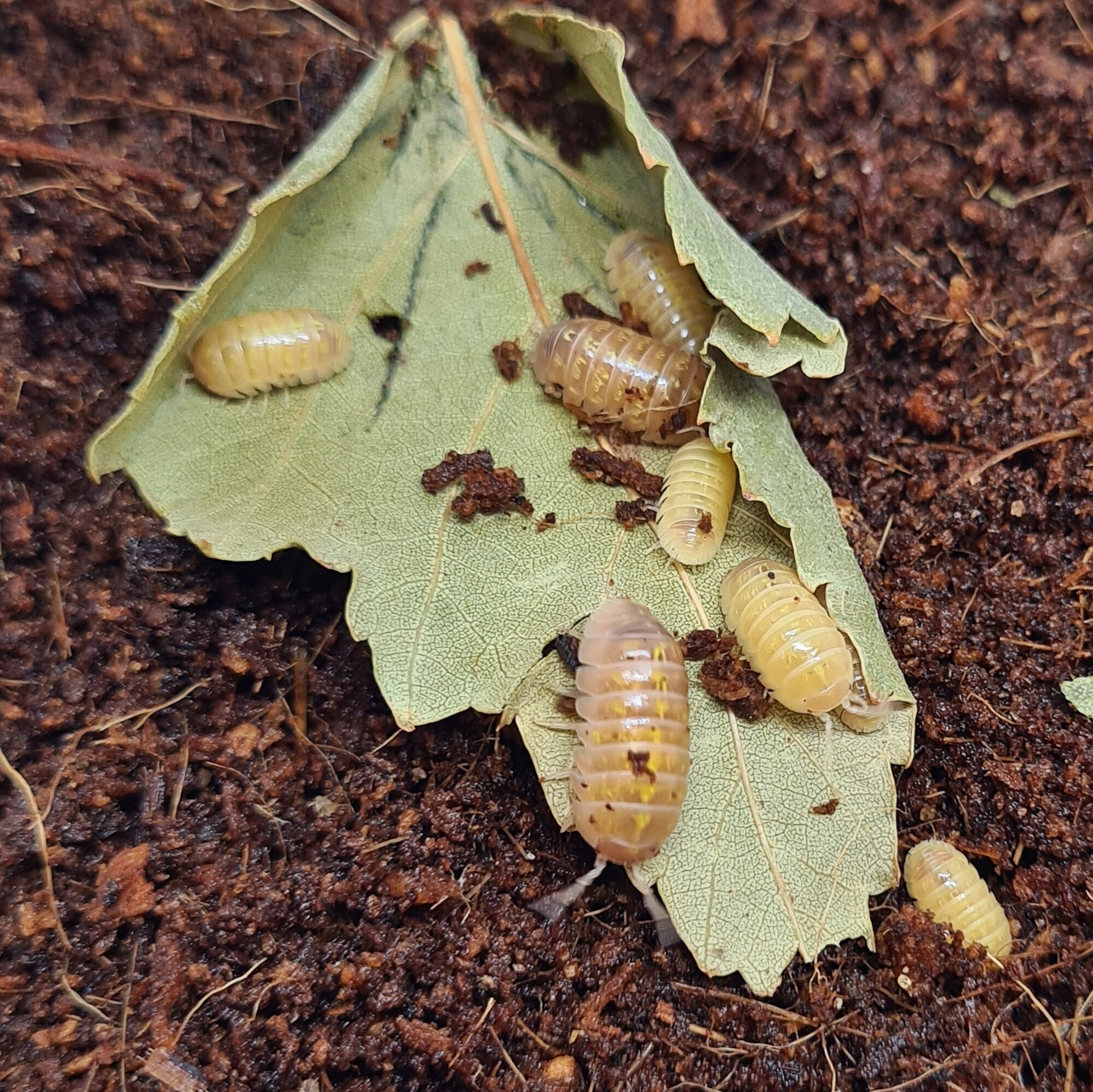 Entregado en un contenedor lleno de humus de coco y 5 isópodos