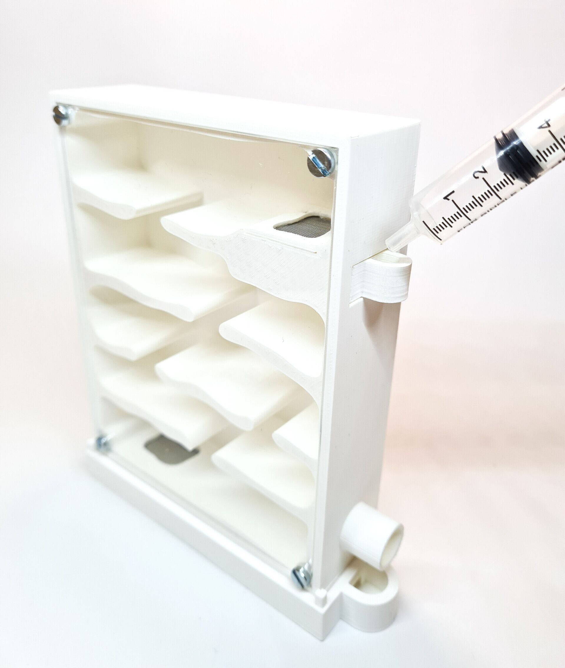 il nido è dotato di un sistema di umidificazione a rete appositamente sviluppato. L'acqua può essere aggiunta ai due serbatoi d'acqua situati all'interno del nido, uno in alto e uno in basso. Si consiglia di inserire un batuffolo di cotone nel serbatoio e inumidirlo. Questo garantirà una migliore distribuzione dell'umidità.