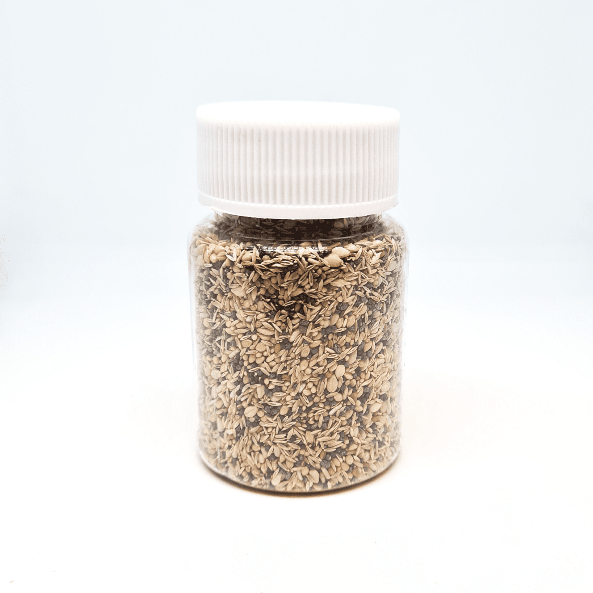 Zadenmix met 7 verschillende soorten zaden. Omdat jonge kolonies die zaden eten zoals Messor nog wat moeite hebben met het fijn kauwen van zaden, is deze speciaal samengestelde mix met kleine zaden perfect voor startende kolonies vanaf 1e werksters.